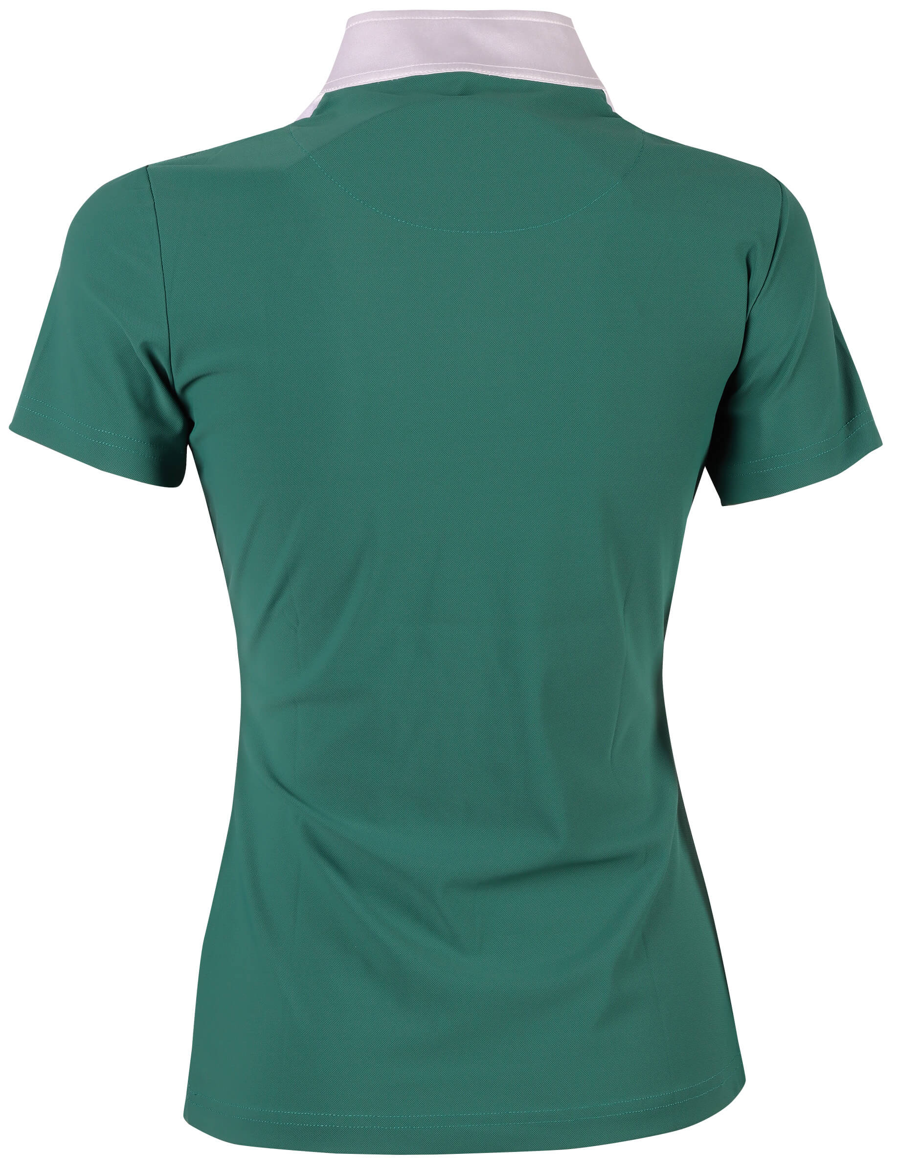 Wedstrijdshirt met korte mouw, satijnen kraag en satijnen inzet op de borst en kristallen knopen.