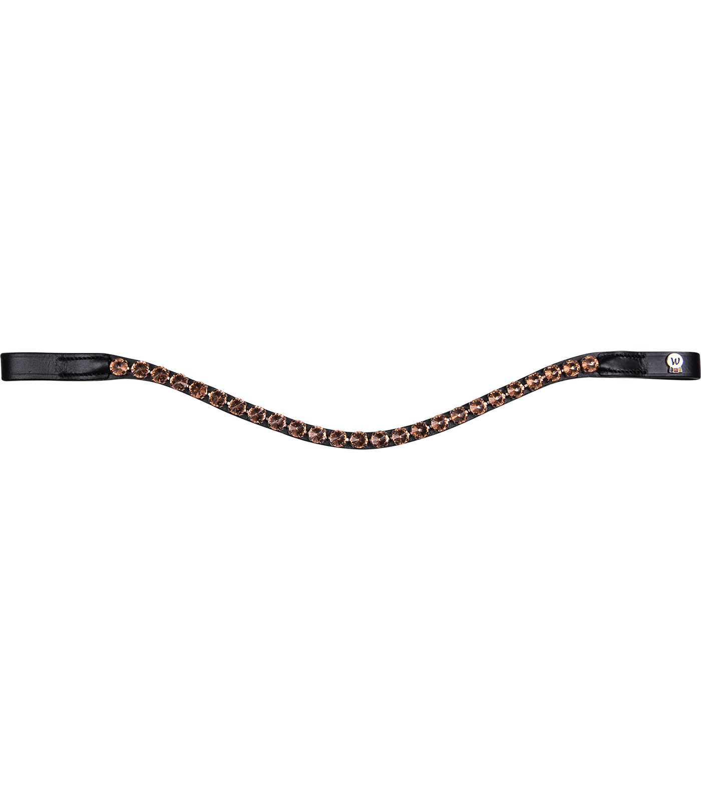 De X line frontriem is vervaardigd uit hoogwaardig leer met elegante roségouden accenten. De frontriem is rijkelijk versierd met grote, glinsterende strass stenen en beschikt over zachte voering voor optimaal comfort. Beschikbaar in maten Full, Cob, PON.