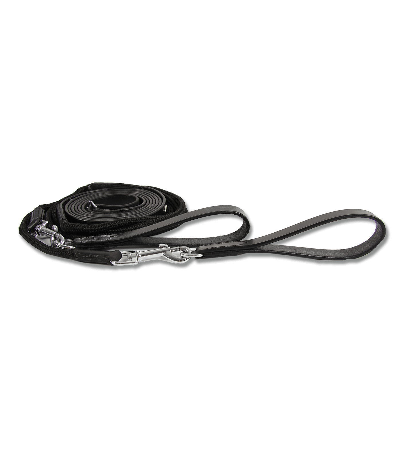 De X line slofteugels zijn vervaardigd uit hoogwaardig zwart leer, versterkt met een nylon touw. Voorzien van leren lussen en karabijnhaken voor eenvoudige bevestiging.