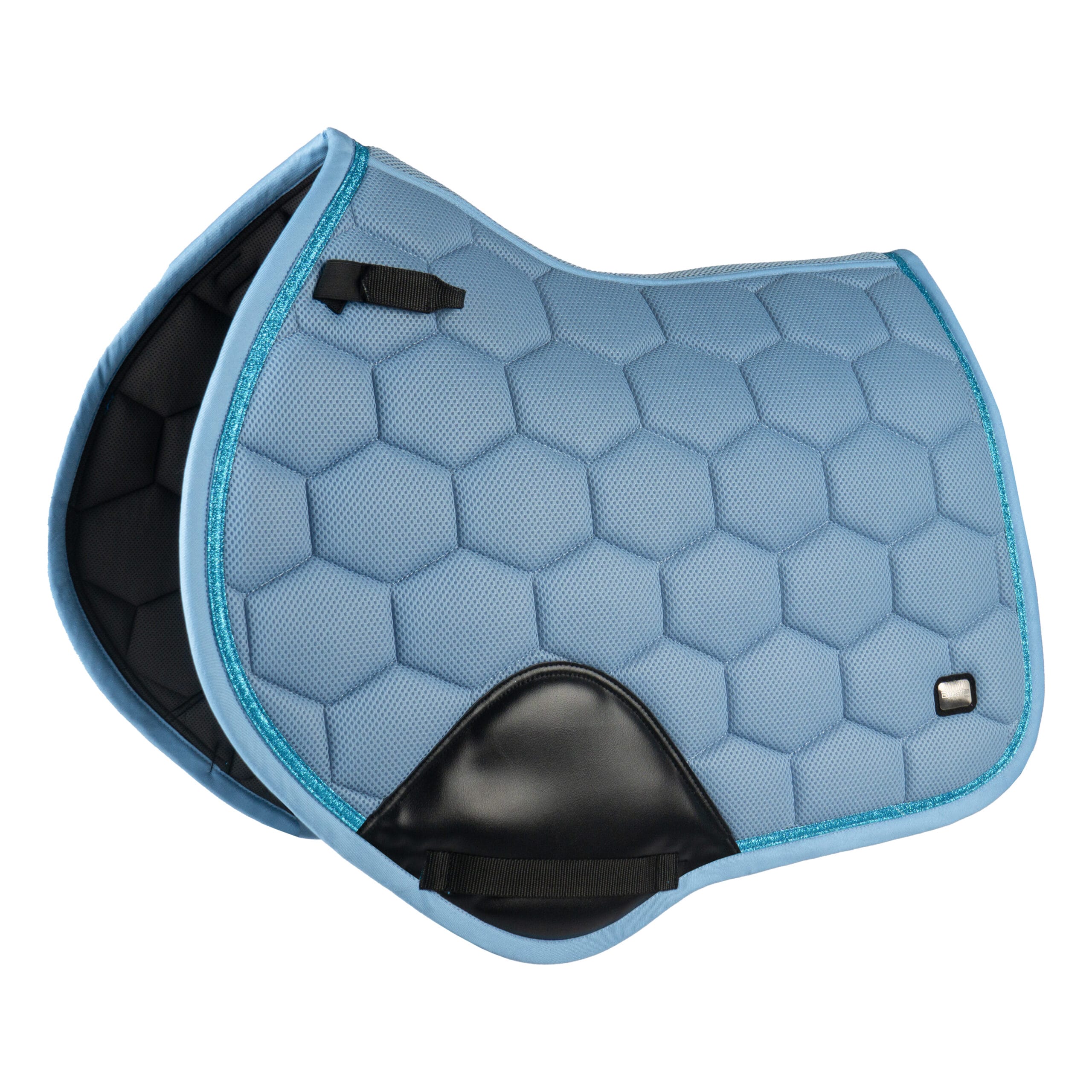 Sportief spring en veelzijdigheidsdekje van mesh materiaal afgewerkt met tonal glitterdetails voor een luxe uitstraling. De ergonomische vorm met hoge schoft zorgt voor een fijne pasvorm. Productspecificaties:< Ademend zadeldek van mesh Tonal glitter details Optimale vorm met hoge schoft Materiaal:< Buitenzijde: 100% polyester binding: 100% katoen glitterdetail: 100% polypropyleen