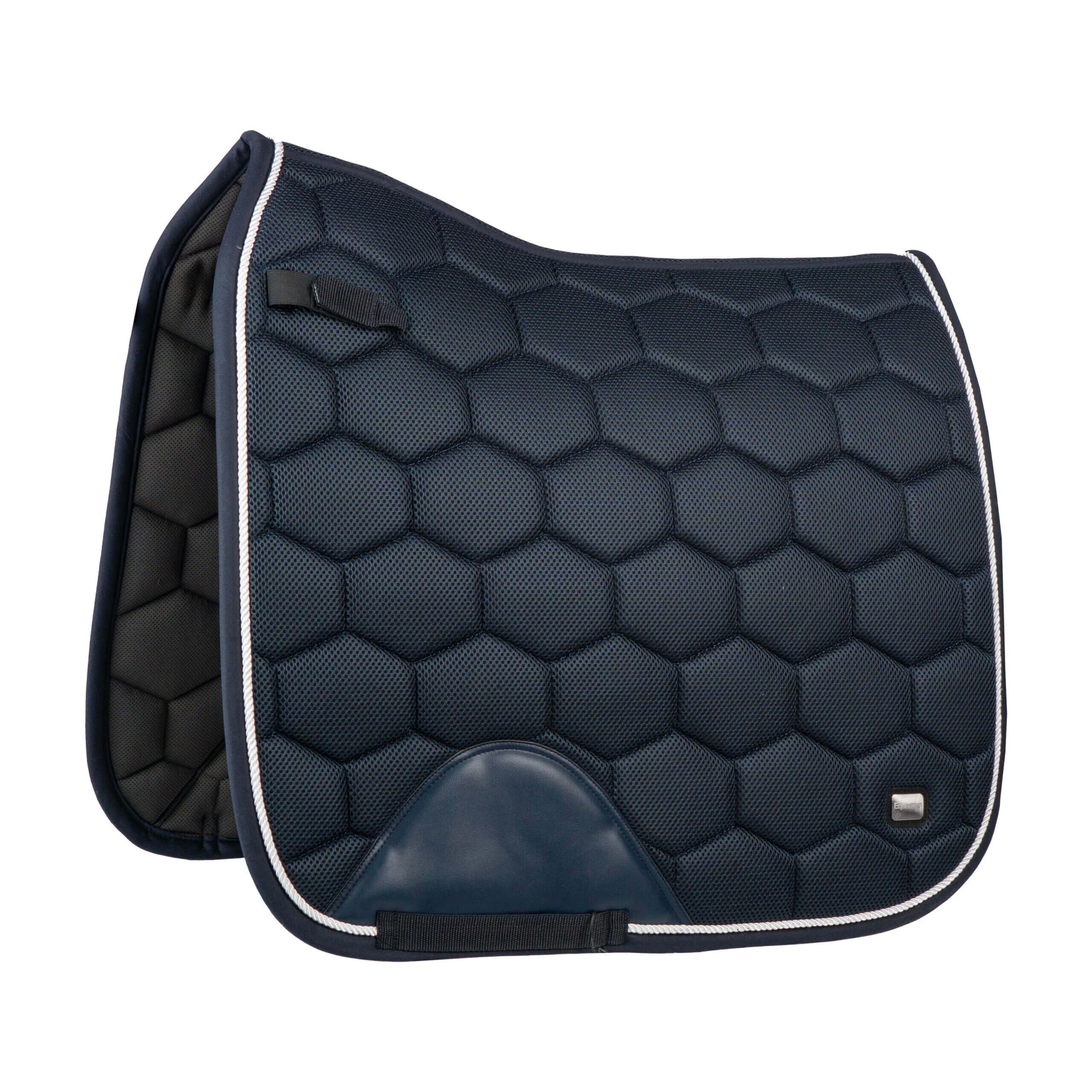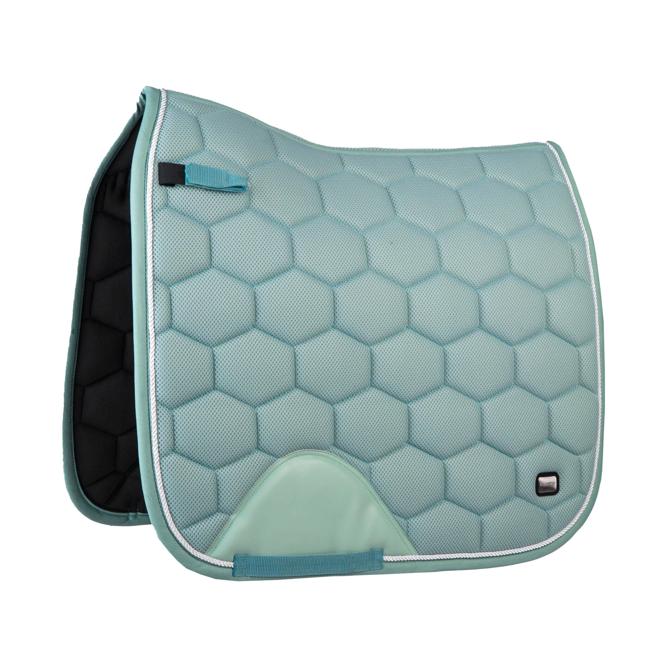 Elegant en ademend mesh dressuur zadeldek met witte parelmoer accenten en hoge schoft voor een fijne pasvorm. De PU versteviging bij de singel en de elastische D ring bevestiging zorgen voor een functioneel ontwerp. Productspecificaties:< : Ademend mesh dressuur zadeldek Witte parelmoerkleurige accenten Optimaal gevormd met hoge schoft D ring bevestiging met elastische inzet PU versteviging bij de singel Materiaal:< 100% polyester binding: katoen